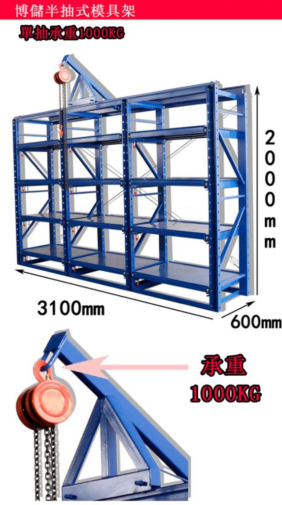 手搖模具架特點:承重大,操作輕便,抽拉靈活。每層可定制3-10噸