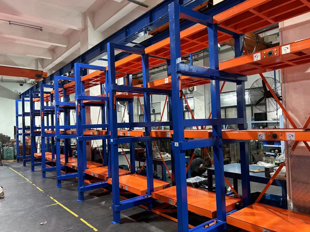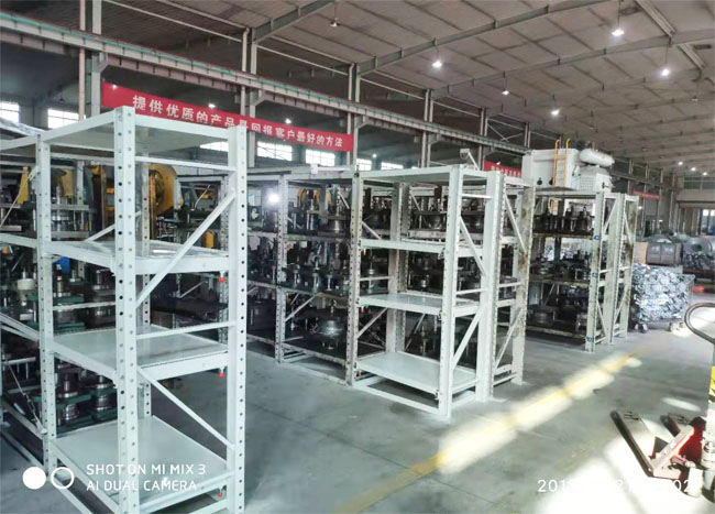 只需簡(jiǎn)單的一步:一個(gè)模具架,兩位安裝師傅,那么你也能擁有圖下一樣整齊規(guī)劃的模具倉(cāng)庫(kù)